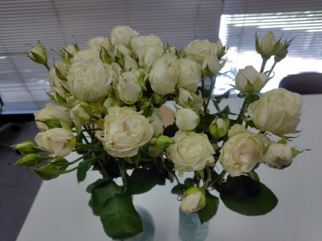 この春、受験に見事合格された生徒様の保護者様より、たくさんの白いバラをいただきました。