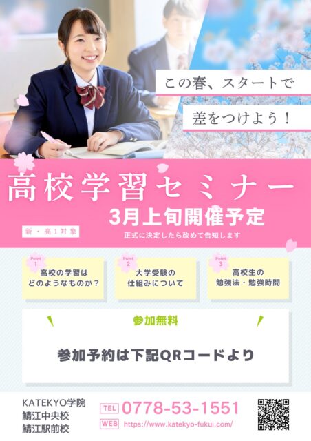そこで、皆さんが最高のスタートダッシュを切れるよう、「高校学習セミナー」を開催します!